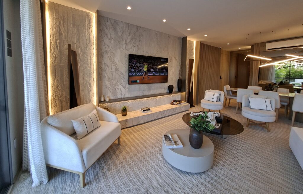 O Claris Casa & Clube leva a assinatura do escritório SA & Almeida Arquitetura e Paisagismo, que desenvolveu um projeto contemporâneo, sofisticado e ao mesmo tempo acolhedor. As áreas sociais e de convivência têm decoração assinada por Débora Aguiar, referência em interiores de alto padrão, garantindo ambientes que unem beleza, funcionalidade e sofisticação.