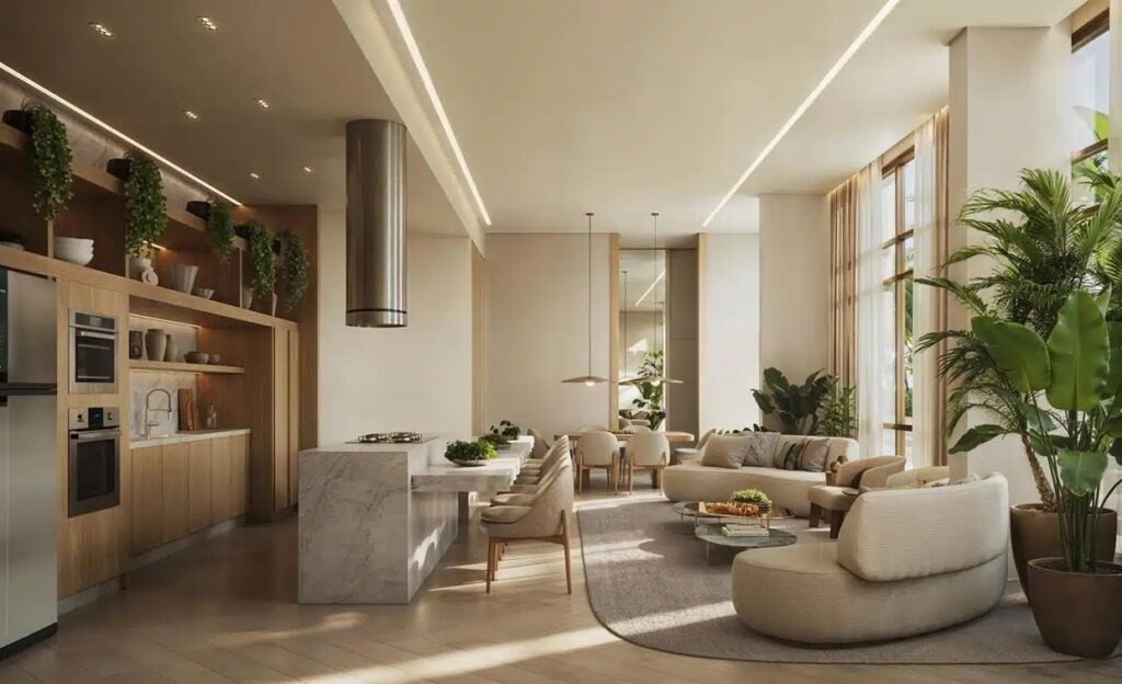 As unidades contam com opções de 4 e 5 quartos, atendendo famílias que buscam mais espaço, conforto e praticidade. Os apartamentos tipo oferecem integração entre sala, cozinha e varandas amplas, enquanto os gardens trazem quintais privativos para quem valoriza o contato direto com a natureza. Já as coberturas funcionam como verdadeiras casas suspensas, com áreas externas exclusivas, piscinas privativas e vistas panorâmicas da Barra da Tijuca.